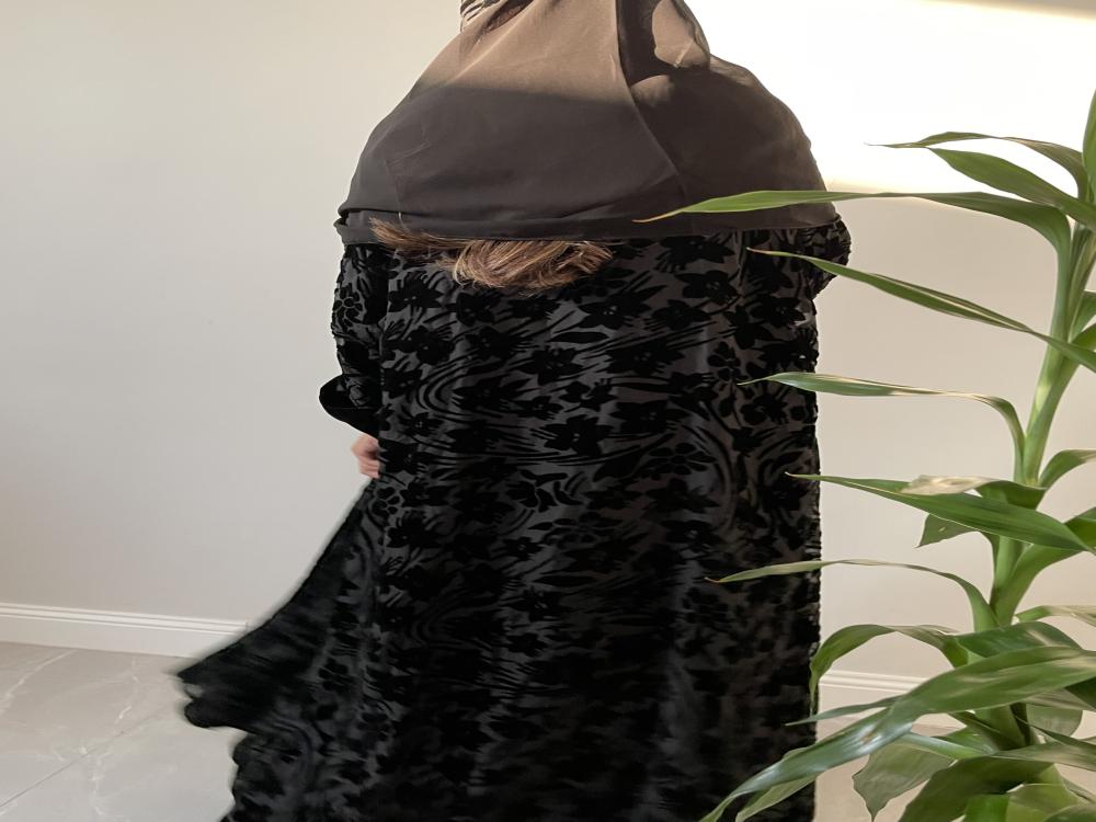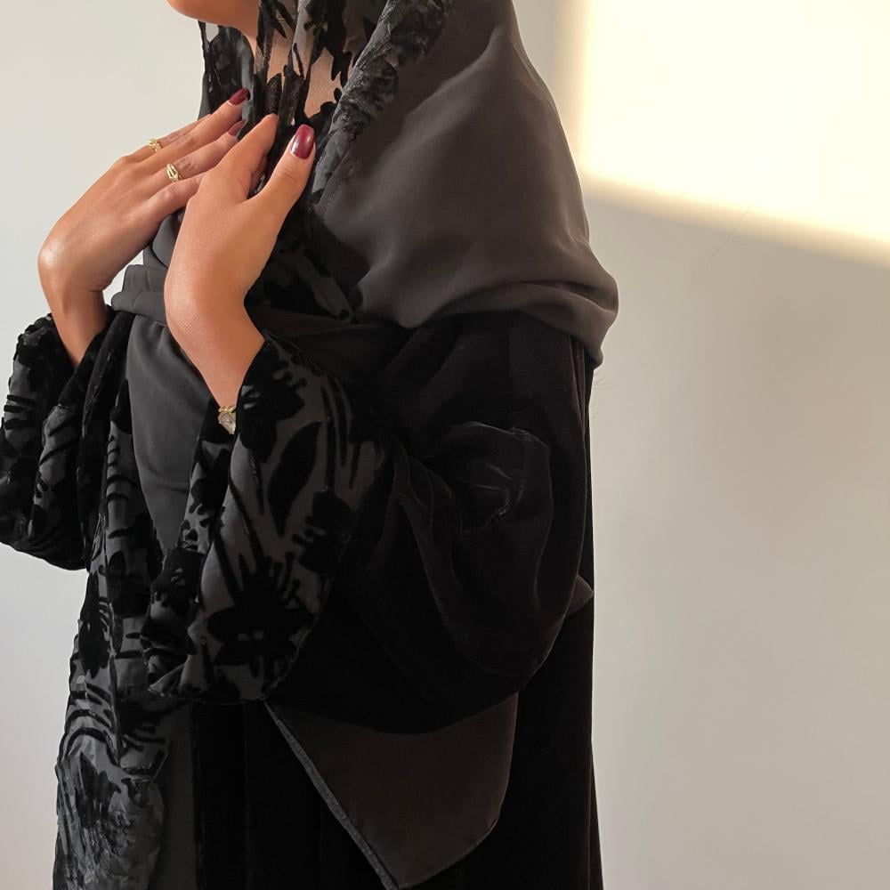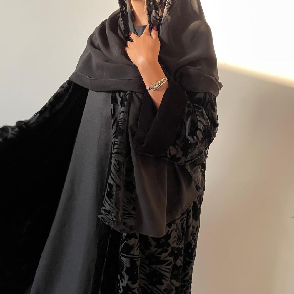 عباية كلوش واسعة بقماش القطيفة المشجر + قطيفة سادة - دبل فيس