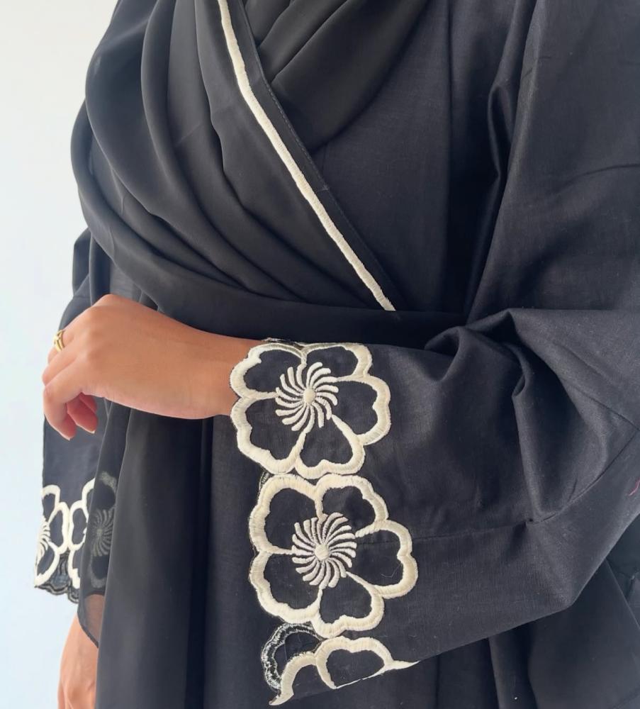 عباية نص بشت بتطريز على الاكمام.. قماش لينن