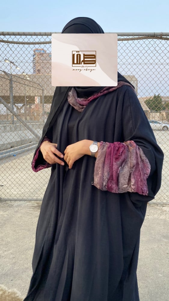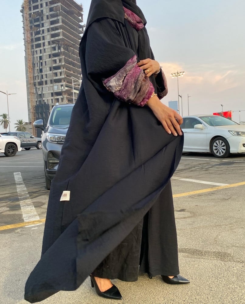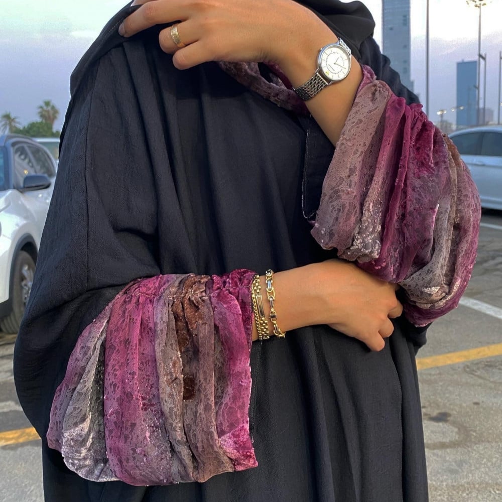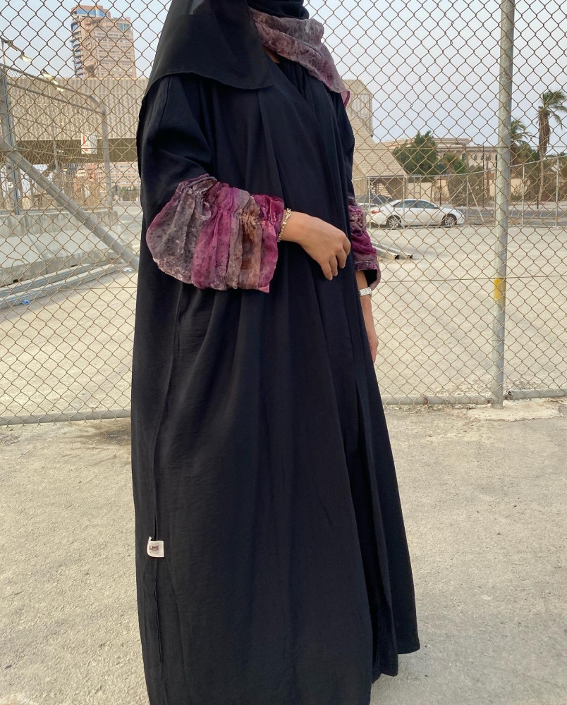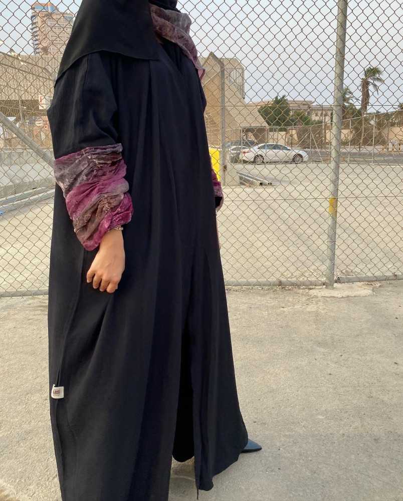 عباية كريب مغسول قصة واسعة - أكمام شيفون وقطيفة ..