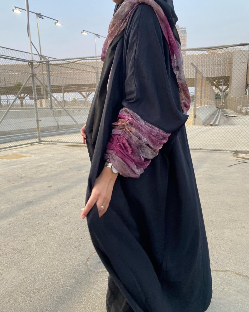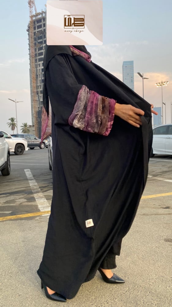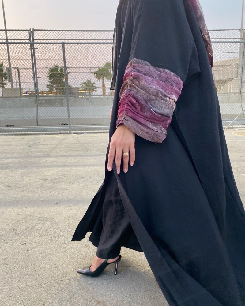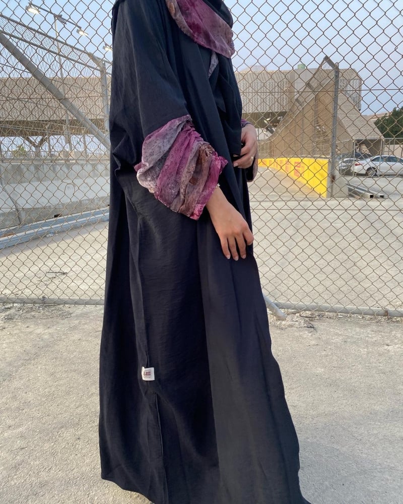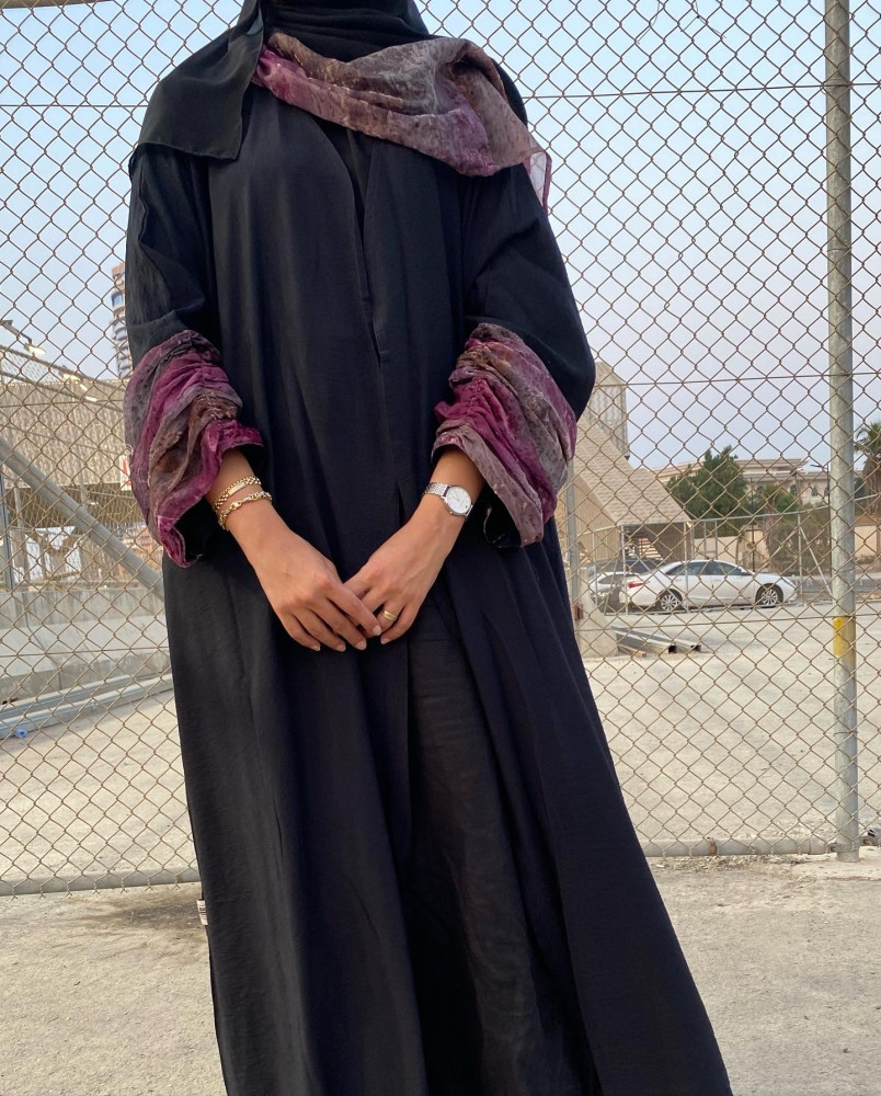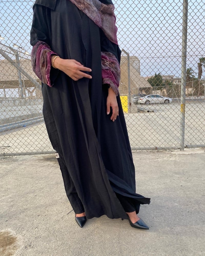 عباية كريب مغسول قصة واسعة - أكمام شيفون وقطيفة ..