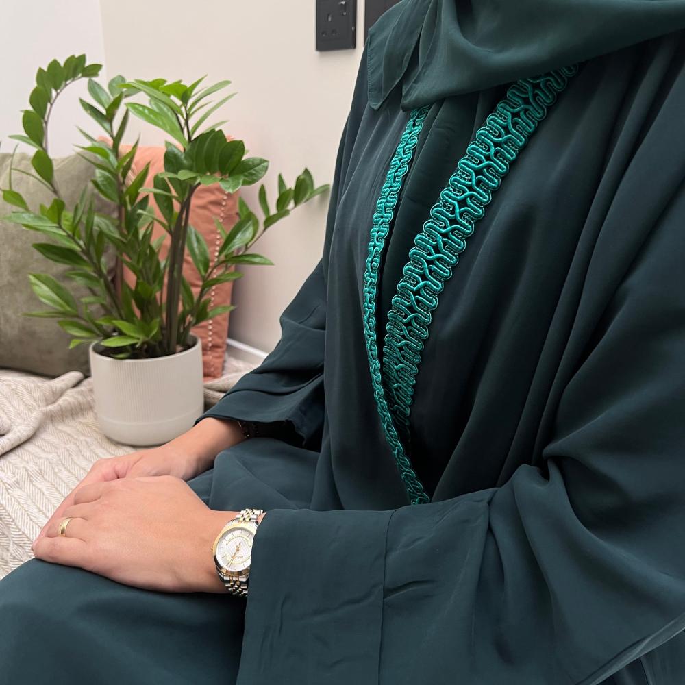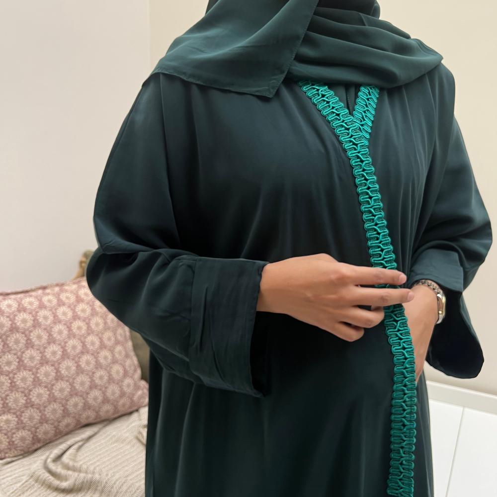 عباية حرير مغسول قصة نص كلوش واسعة .. باللون التركواز الغامق