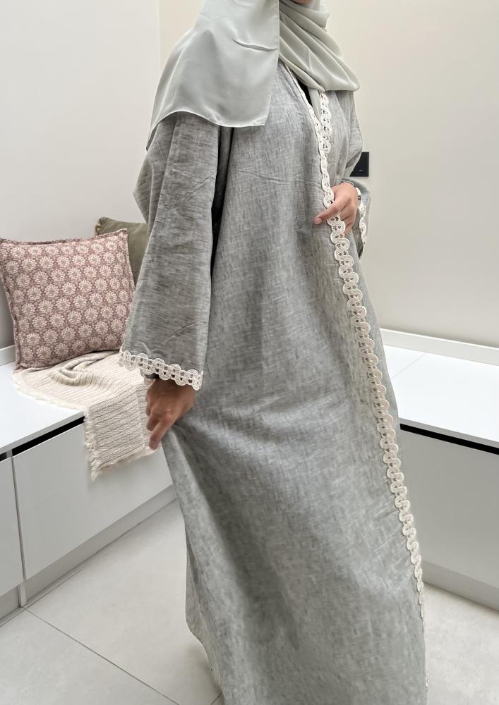 عباية قصة نص بشت .. لينن باللون البيج و الاخضر المائل للرمادي ..